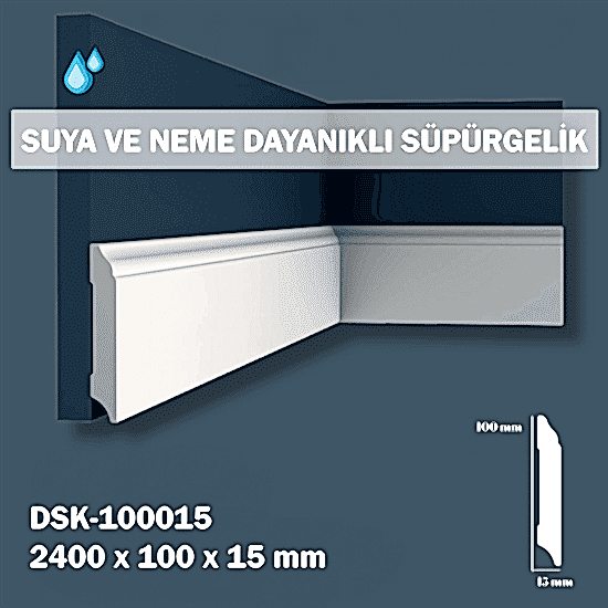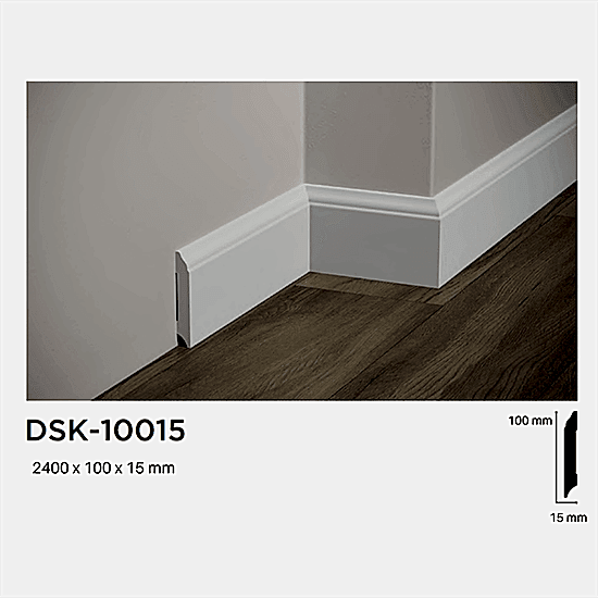 10cm Polimer Lake Süpürgelik DSK10015, mekanlarınıza zarafet ve şıklık katmak ve estetik bir atmosfer oluşturmak için özel olarak tasarlanmış bir üründür.