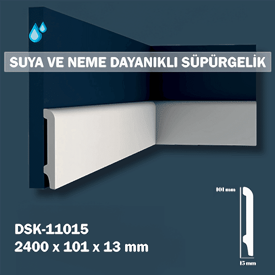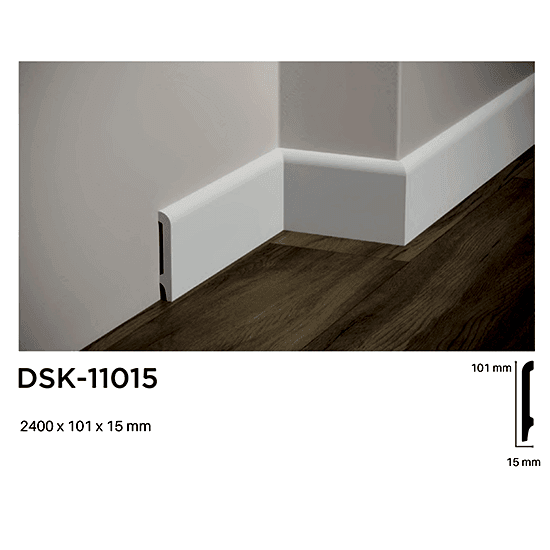 10 cm Düz Polimer Lake Süpürgelik DSK11015, mekanlarınıza zarafet ve şıklık katmak ve estetik bir atmosfer oluşturmak için özel olarak tasarlanmış bir üründür.