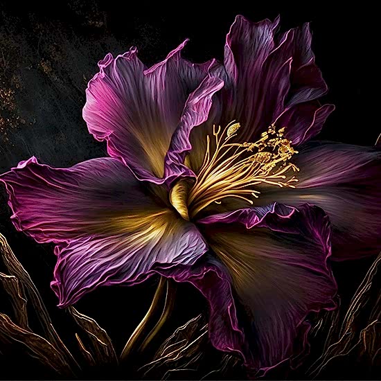 3D Altın Parıltılı Mor Çiçek Silinebilir Duvar Kağıdı YF-02006