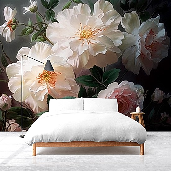 3D Canlı Beyaz Çiçekler Poster Duvar Kağıdı YF-02182