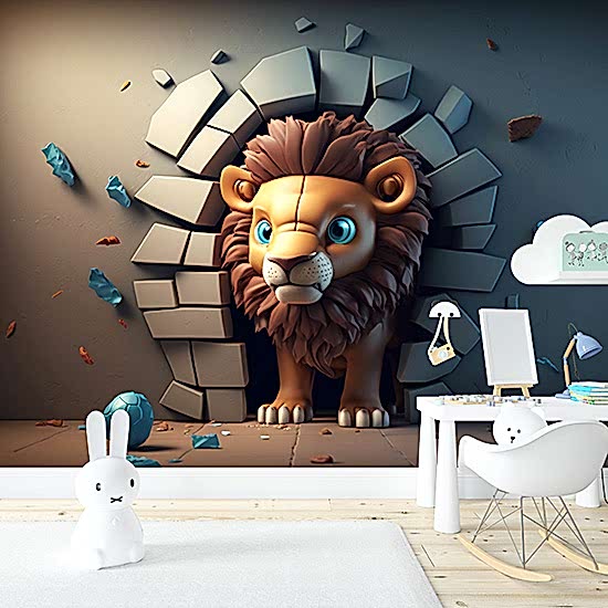 3D Sevimli Yavru Aslan Çocuk Odası Duvar Kağıdı YCO-00342
