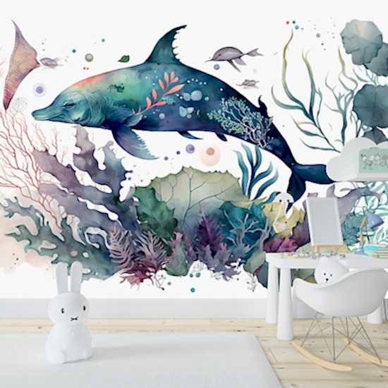Balina ve Balıklar Suluboya Çocuk Odası Duvar Kağıdı YCO-00249