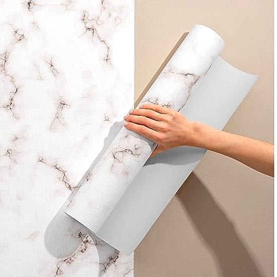 Beyaz Kendinden Yapışkanlı Folyo Mat Mermer Desenli Mat Kaplama Folyosu 0220