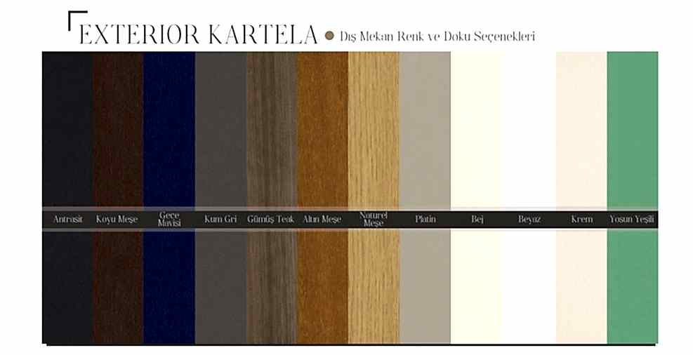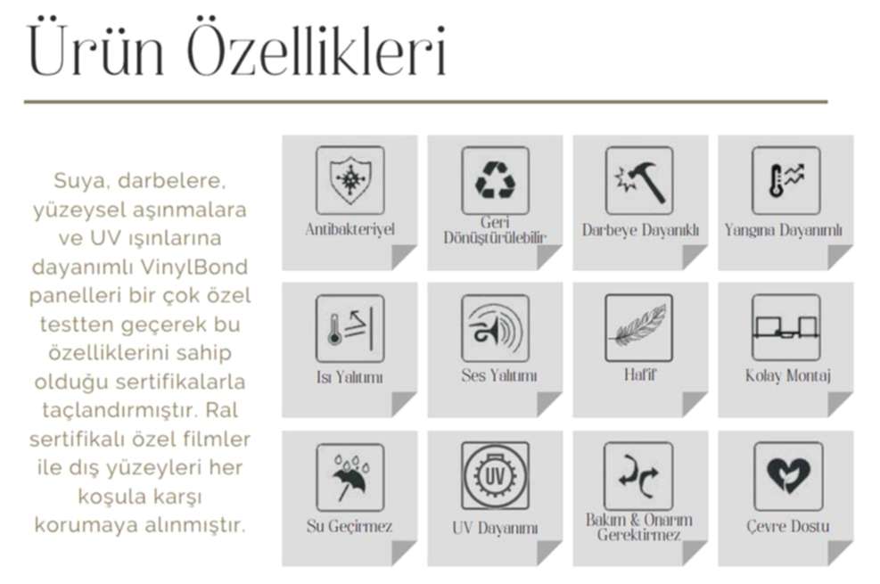 Bizim ürünlerimiz sert dayanıklı kompozit vinyl malzemeden üretilmiştir. Kompozit vinyl hafif ama dayanıklı olan bir malzemedir. Geri dönüşüme uygundur. Rutubete dayanıklı, su geçirmez özelliktedir. Çürüme küf yapmaz. Isı koruma, izolasyon ve ses yalıtımı sağlar. Güvenle alabilirsiniz.