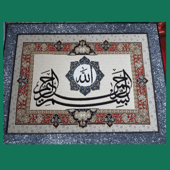 İslami Simli Çerçeveli Goblen Tablo