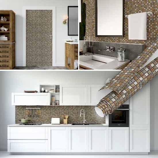 Kahverengi mozaik desenli yapışkan folyo modelleri ile evinizin havasını değiştirin. Üstelik mozaik fayans görünümlü folyolar en çok tercih edilen yapışkan folyo modelidir.