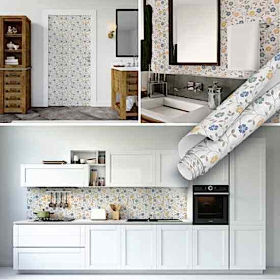 Çiçek Desenli Yapışkanlı Folyo ile Fayans ve Duvar Kaplama