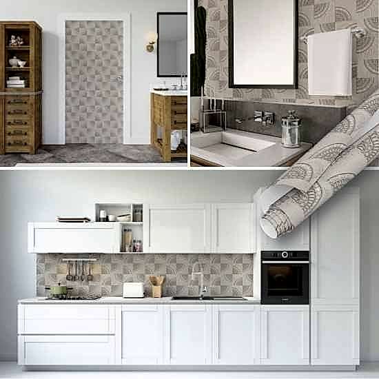 Kum rengi mozaik görünümlü yapışkan folyo modelleri ile evinizin havasını değiştirin. Üstelik mozaik görünümlü folyolar en çok tercih edilen yapışkan folyo modelidir.
