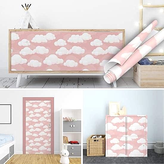Pembe bulut desenli yapışkanlı çocuk odası kaplama folyo modelleri ile çocuk odasının havasını değiştirin. Üstelik bulut desenli folyolar en çok tercih edilen çocuk odası yapışkan folyo modelidir.