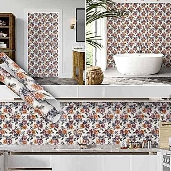 Renkli Çiçek Desenli Yapışkanlı Folyo ile Fayans ve Duvar Kaplama