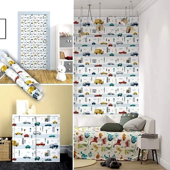 Sevimli Araba Desenli Yapışkanlı Folyo ile Dolap ve Mobilya Kaplama
