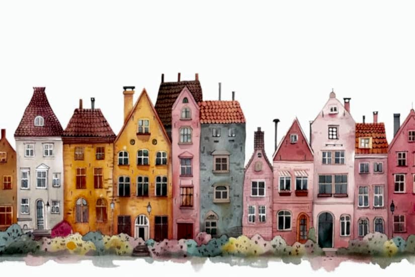 Sevimli Evler Duvar Kağıdı, Şehir Desenli Duvar Kağıtları YCO-02563