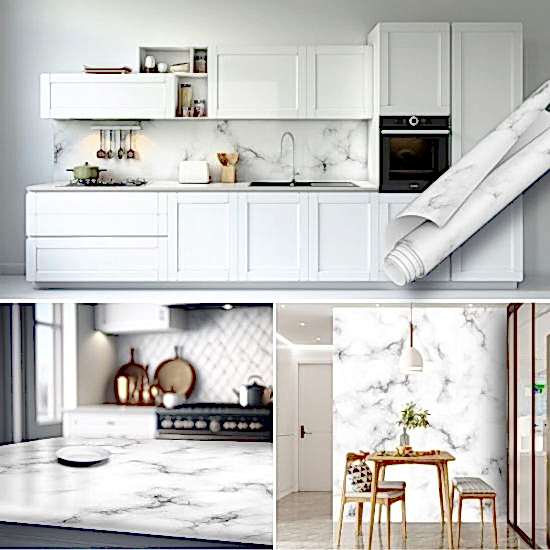 Siyah Beyaz Mermer Desenli Yapışkanlı Folyo ile Fayans ve Duvar Kaplama
