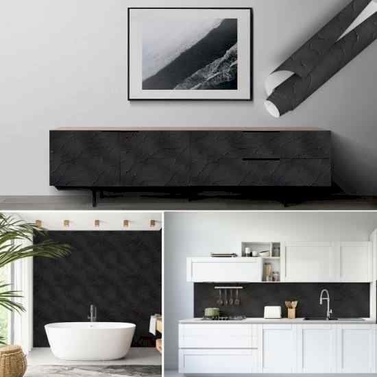 Siyah Kendinden Yapışkanlı Folyo, Duvar Görünümlü Folyolar 0616, Duvar Kaplama Folyoları, Su Geçirmez, Isıya Dayanıklı. Banyo, Yatak Odası, Mutfak için Ev Dekoru, Dolap Yapışkanı, Kendinden Yapışkanlı Folyo Modelleri ve Fiyatları dukkanstorecenterhub.shop’da.