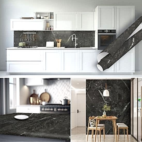 Siyah Mermer Görünümlü Yapışkanlı Folyo ile Fayans ve Duvar Kaplama