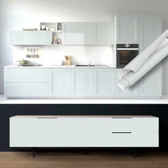 Her paket, dolaplar, mutfak tezgahları ve duvarlar için 1 adet Yapışkan Folyo Çıkartması içermektedir. Yapışkanlı folyo mutfak tezgah arası kaplama da kullanılabilir.