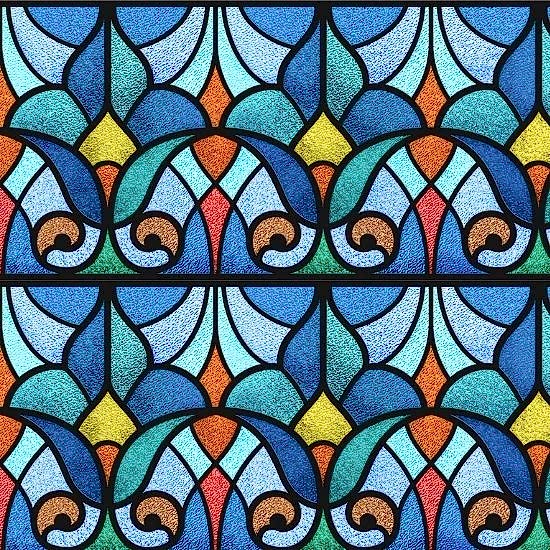 Yapışkanlı Vitray Desenli Folyo, Mavi Şeffaf Folyolar 0917